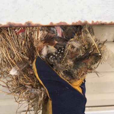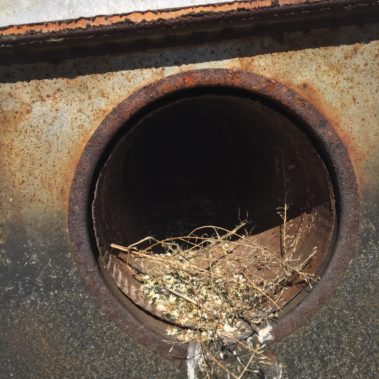 On residential homes, they tend to frequent attics, vents, and soffit areas. The nests usually tend to be fairly large in size. Primarily made out of hay, it looks similar to a large hay stack inside of an attic. They come through compromised exhaust vent systems and tear through the pipe wall entering into the attics.